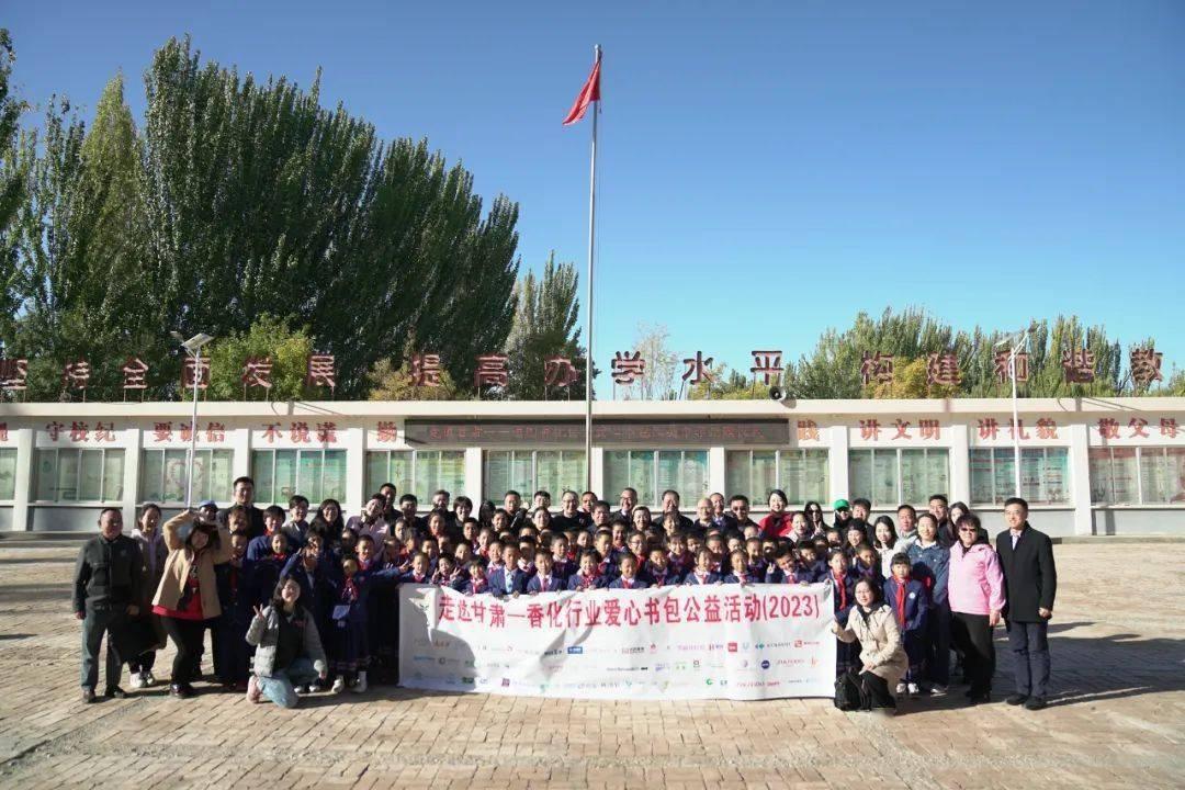 2023年10月25日至27日, 由中國(guó)香料香精化妝品工業(yè)協(xié)會(huì)組織的2023年度“走進(jìn)甘肅——香化行業(yè)愛心書包公益活動(dòng)”捐贈(zèng)儀式在甘肅省酒泉地區(qū)敦煌市舉行,來(lái)自全國(guó)香料香精、化妝品行業(yè)二十余家企業(yè)的代表、協(xié)會(huì)秘書處的相關(guān)部門人員等五十余名人員參加了在陽(yáng)關(guān)中心小學(xué)、西關(guān)小學(xué)、第四中學(xué)學(xué)校舉行的捐贈(zèng)儀式。